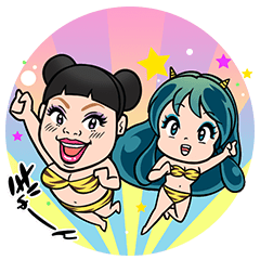 ラムちゃんと吉本芸人のコラボスタンプじゃな!ラムちゃん、スタンプになっても、かわゆいのう。使いやすい上に笑いもとれるとは、ワンダフル!君にプレゼント決定じゃ!