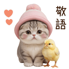 かわいい帽子の猫とひよこ 敬語 BIG