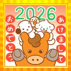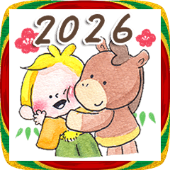 [2026年]新年&年末_馬とレトロな犬と女の子