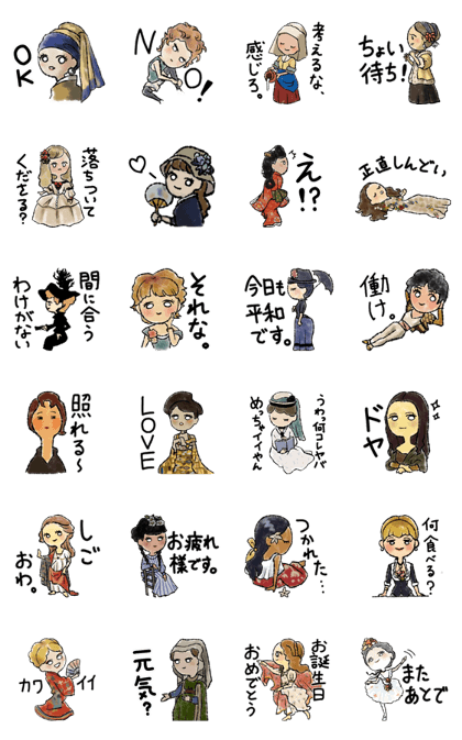 このスタンプは、名画のキャラクターが様々なシチュエーションで、まるで演劇をしているかのように感情を表現しているのが面白い点です。例えば、「N O!」のスタンプは、ユーモアを交えた拒否の意思表示として使え、他のスタンプにはないユニークな個性を放っています。(2025/10/03 00:36)