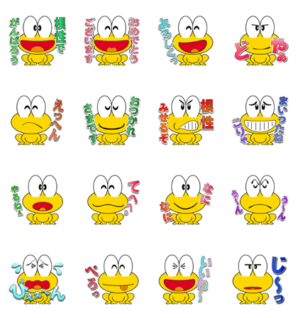 出ました、懐かしのど根性ガエルスタンプ!ピョン吉、ヒロシはもちろん、京子ちゃん、寿司屋の梅さん、ヨシコ先生、担任の町田先生、カァちゃん、ゴリライモ、子分の五郎とレギュラーメンバーが懐かしいけど、スタンプの登場人物?はピョン吉だけ。ピョン吉の様々な表情とメッセージを楽しむスタンプですね!ど根性ガエルは日本がとても元気でこれからって時代の活力あるマンガでした。こういうアニメキャラの元気を貰って、今のこのコロナで先行き不透明な時代を、皆で励まし合って乗り切って行きたいですね!(2021/03/30 23:07)
