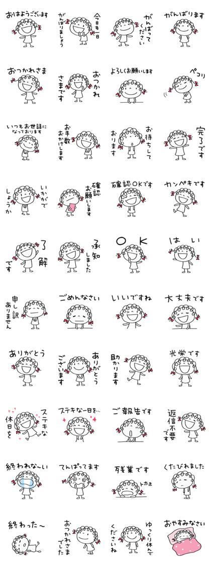 好感の湧く女子に気持ちが和みます。彼女の真心のこもったメッセージに親近感を覚えますね。日々の暮らしは仕事や人づきあい、突然の災害や事故などうまくいかない事もありますが、彼女のみんなに好かれる人柄が癒してくれます。彼女の自然な雰囲気にトークもスムーズになりますね。スタンプにある「ありがとうございます」のお礼は頭が下がる感謝!また、「おつかれさまです」の労いに救われます。そして、「よろしくお願いします」の親愛は親睦を深めますね。「おはようございます」の爽やかな挨拶には心が洗われます。爽快なα波を運ぶこのスタンプの高い女子力は心をリラックスさせ、リフレッシュできますけね。アロマのように快く心に浸透、気苦労や緊張も胸のつかえがとれてスッキリ!彼女の思いやりはマイナスイオンを届ける最高のセラピー!キュートに癒されてほっこりし、胸高鳴り、心潤い、気持ちも生き生き活性化!元気が出て、幸せな喜びを感じます。明日の英気も活力も養えて、心穏やかになりますね。(2026/04/03 07:55)