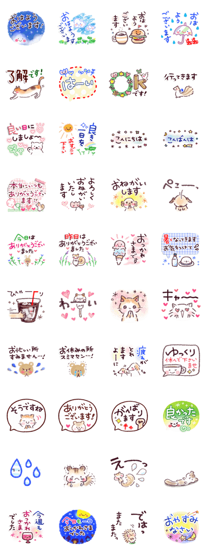 大変な事が起きる現実に心が痛み、不安に胸がいっぱいになる事も多いですね。でも、悲しんでばかりだと、気持ちが滅入ってしまいます。こんなときこそラインを前向きに明るく楽しく面白くし、みんなをほっこりさせたいですね。そんな手助けをしてくれるのが「大人の丁寧・敬語スタンプ」です。見るからに微笑みがこぼれそうな愛嬌あるスタンプですが、分かり易くてコミュニケーションをスムーズにしますね。「ありがとうございます!」と感謝されたり、「おつかれさまです」と労われたら、苦労も喜びに変わります。「OKです!」と激励されたら身が引き締まりますね。「ゆっくり休んで下さいませ」の真心は疲れた心にマイナスイオンを届けてリフレッシュ!「よろしくおねがいいたします」の親愛が絆を強めで、「ぺこーっ」の誠意に心洗われます。「わーい」の喜びで幸せを分かち合えますね。この親身な愛のα波はベストヒーリング!お互いを尊重するこのスタンプでエールの交換!日々の緊張を和らげてリラックスできるこの上ないセラピーでみんなを癒やせます。(2026/01/17 10:13)