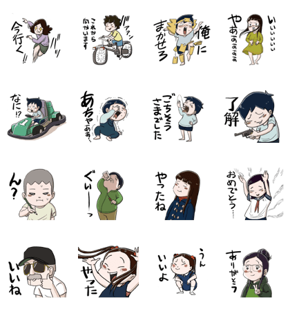日常のリアリティあふれる表情と、この独特なタッチの作画が最高に魅力的です。「まかせろ」「了解」など、家族や友人とのやり取りですぐに使えるセリフが揃っているのが嬉しいですね。特に、ゴーカートに乗る姿や、大人たちのふとした表情は、他のスタンプにはない生々しいユーモアを生み出します。会話に漫画の世界観をプラスできるのが最高です!(2025/10/27 01:41)