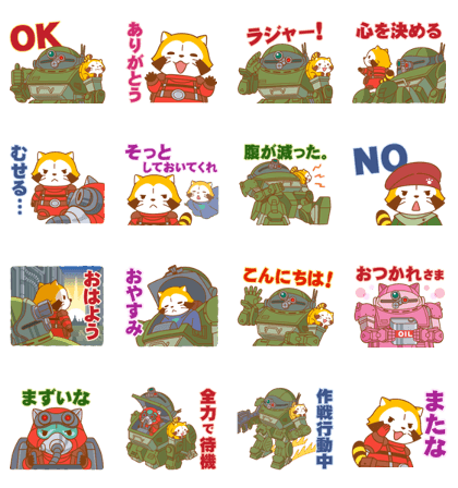 アフターコロナでも新たな波が押し寄せる病魔との戦い!まだも続く紛争!こういう争い事や武装は平和を乱しますが、「装甲騎兵ボトムズ ザ・ラスカルショルダー」のような愛嬌のある可愛らしい兵士は大歓迎!何しろ、世界名作劇場「あらいぐまラスカル」が「装甲騎兵ボトムズ」と夢のコラボを実現したスタンプとは貴重ですね。キリコ・キュービィーのように愛機のロボットのスコープドッグに乗り込み、操縦する姿が兎に角かわかっこいい!両アニメの異なる世界観が見事に調和していて感動します。「OK」「ありがとう」「おはよう」「おやすみ」「こんにちは!」「おつかれさま」等の日常会話も多く、どちらのファンの友達は勿論、いづれも知らない人にもほっこりした雰囲気が伝わる優しさが魅力ですね。このスタンプを送って、大変な毎日と戦っているみんなに、しばし心の休息を届けたいです。(2023/09/27 17:10)