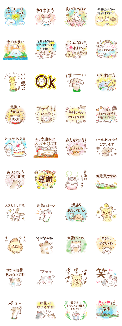 「丁寧・ほっとする言葉のスタンプ」は思いが通じあえる分かり易さに嬉しくなりますね。見ていて微笑みがこぼれそうな愛嬌があり、様々なバリエーションがコミュニケーションをスムーズにしますね。ユーモラスなイラストとフレンドリーなメッセージに魅力を感じます。愉快なときはライントークを盛り上げ、寂しいときは気を紛らわすことができますね。「ありがとうございます」のお礼は嬉しいもの!「おつかれさまです」の労いにいたわりの気持ちが伝わります。「ファイト!」の激励に元気がもらえますね。「お互いにむりせずに」の優しさのマイナスイオンに癒されます。「お元気ですか」の親愛は心の距離を縮めますね。「おはよう」の挨拶が気持ち良く、そのα波に爽やかな気分!「ペコ…」の誠意に気持ちがすっきりと浄化!「いいねー!!」の喜びに幸せな気分が広まりますね。どんなときにも心をリラックスさせるセラピー効果で、リフレッシュできます。明日への英気も養え、お互いに気持ちを通わす事で支え合い、心が一つになりますね。幸せな明日へ歩み出せます。(2024/02/06 03:04)