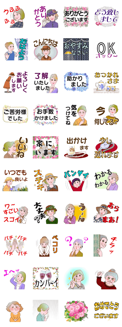 「マダム達のデカ文字 No102」は厳しい現実で夢に憧れる人が気持ちを休める事ができるスタンプですね。災害、事故、事件、紛争等の不安と緊張で強張った心をほぐしてくれます。しかも、包容力のあるマダムたちの真心のメッセージが歓迎してくれるみたいで嬉しいですね。「ありがとうございます」のお礼に達成感や「おつかれさま」の労いに満足感を感じますね。「パチパチパチパチ」の拍手の激励は心の糧!「気をつけてね」の優しさでマイナスイオンが届いてリラックスできます。「よろしくお願いします」の親愛は心の距離を縮め、「ペコリ」の誠意に気持ちも浄化!「おめでとうございます」の喜びは希望への活力!様々な出来事でギスギスするときも、みんなにα波を運ぶこのスタンプのセラピー効果でリフレッシュでき、気持ちも穏やかに落ち着きますね。明日の英気も養え、お互い思いを通わす事で心が一つになりますね。協力して頑張れば幸せは必ず来ます。このスタンプでエールを交換し、励まし合い、助け合え、前向きに明日へと歩み出せますね。(2024/10/03 10:08)