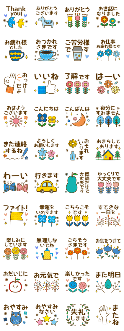 カップや植物、小物の描き込みが豊かで、見るたびに新しい発見があるのが楽しい!色のトーンが統一されているためトーク画面で浮かず、受け手に安心感を与えるかと。動いていないのにリズムを感じる配列と、読みやすい短文の組合せで、短いメッセージを丁寧に伝えたい場面で重宝しそう。(2025/12/03 02:57)