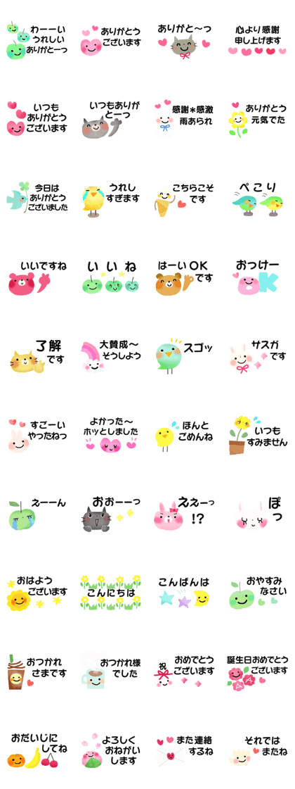 「控えめ*シンプルなスタンプ」は、その名の通り、シンプルでありながらも、さりげなく気持ちを伝えられる絶妙なデザインが魅力的なLINEスタンプです。過度な装飾や派手な表現を抑えつつ、優しさや温かみを感じさせるデザインが特徴で、どんなシチュエーションでも使いやすいのが嬉しいポイントです。 特に、シンプルながらも絶妙なニュアンスを含んだフレーズが多く、相手に対して圧をかけすぎず、それでいてしっかりと気持ちを伝えられるのが素晴らしいです。「ちょっと伝えたいけれど、大げさにはしたくない」「控えめに気持ちを表現したい」という場面にぴったりで、ビジネスシーンからプライベートまで幅広く活躍してくれることでしょう。 また、色使いやフォントの選び方にも工夫が凝らされており、シンプルでありながらもどこかおしゃれで洗練された印象を与えてくれます。目立ちすぎず、それでいてしっかりと存在感があるので、 LINEのトーク画面にも自然になじみ、どんな相手にも送りやすいデザインです。 日常のちょっとしたやりとりに、さりげなく心を添えることができる「控えめ*シンプルなスタンプ」。主張しすぎず、それでいて確実に気持ちを伝えられる絶妙なバランス感が、多くの人に愛される理由なのではないでしょうか。使うたびに、その洗練された魅力を実感できる、まさに万能なスタンプセットですね(⋈◍>◡<◍)。✧♡(2025/03/27 14:38)