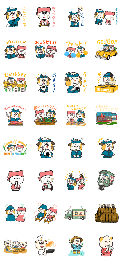 イニャとホニヤって東ヨーロッパ系の名前みたい。おにぎりねこって言われてもあんまりおにぎりに関係なくない?何故におにぎり?てかおにぎりねこって何?それが初見の感想であります。二匹(二人?)の名前は「稲穂」からきてたんですね。納得。すんません、どっちがイニャでホニヤかとか全然分かりません。表題のイラストも、どうやっても犬にしか見えません!「おにぎりねこ」とあったので、ねこだと理解はしました。同意はしませんが。このスタンプの何が凄いって、色々上記に書いてきましたがそれを余裕でザッと流すくらい、この犬もどき猫に心を掴まれたんです。というか、上記に書いたことも充分過ぎるほどツボ!この二匹は夫婦でお米農家さんをしてるんでしょうか。でも籠いっぱいの野菜もありますね。あと、ちっこいのが3匹。そして収穫したお米でおにぎりを作ってキッチンカーででも売っているんでしょうか。想像を掻き立てられます。公式おにぎりねこなのに美味しそうなホットケーキを焼いているのも気になります。田植えをしたり、俵が山積みになっていたり、晩酌の用意をしたり。テーマが何なんだかサッパリ分からないところが推し。冬場外に出てたり、ビーチチェアで休んでたり。何だか分かんない擬人化動物の一年の生活描写のもよう。日常語少々、台詞なし半分弱、あとは「うまい」とか。でもまん丸の目でこっちを見られるとホワホワしてしまうんですよ。純粋な頑張り屋さんな感じが良いです。画のタッチも可愛いし、丁寧に描かれてるし、手書きの字もえらく暖かみがあるんです。誰に送っても問題なし。食べ物の話題で送れて良し。おにぎり・野菜・寿司屋に絡めて使えて良し。応援・旅行・晩酌・田植えにもってこいだし。どうしたらいいか分からないとき・雰囲気を変えたいとき・何かとにかく送りたいとき、おにぎりねこのイニャとホニヤが出番をお待ちしております。笑顔がステキで、凄く働き者のようですよ〜。(2026/03/30 05:30)