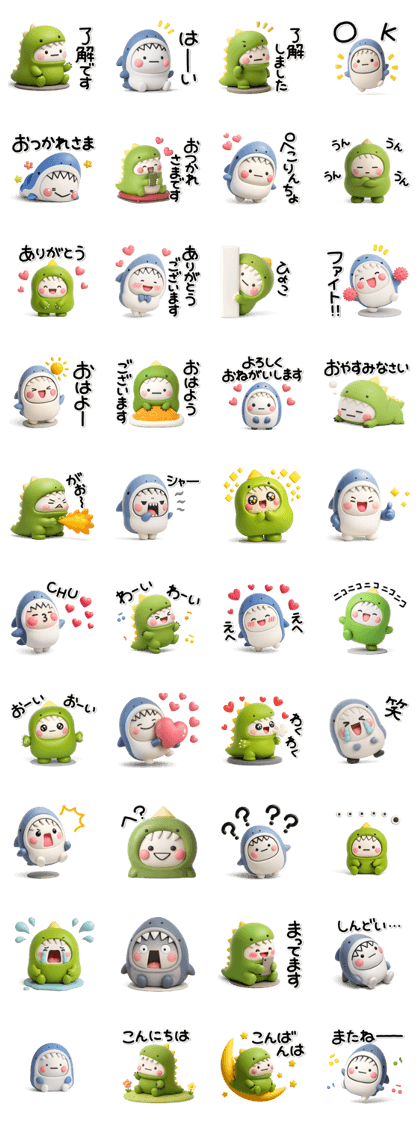 ず~っと使える♡さめと恐竜のスタンプ(しろまる)は、ゆるかわいい世界観がたまらなく癒されるセットです。 サメと恐竜という組み合わせなのに、しろまるらしい丸くて優しいタッチで、とても親しみやすい仕上がり。 日常で使いやすい言葉が多く、どんな会話にも自然に溶け込みます。 表情のバリエーションが豊かで、ちょっとした気持ちを送るのにぴったり。 かわいさだけでなく、実用性も高いのが魅力です。 シンプルながらクセになるデザインで、毎日つい使いたくなるはず。 長く愛用できる“ほっこり系スタンプ”を探している人に、ぜひおすすめしたいシリーズですよ(⋈◍>◡<◍)。✧♡(2025/11/18 08:50)
