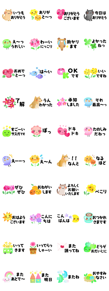「ちょうどいいサイズ感*見やすい文字」は、とても実用的でありながら可愛らしさも感じられる素敵なスタンプです。 文字が大きくて読みやすく、送られた相手にしっかり伝わるのが魅力。スタンプのサイズ感も絶妙で、トーク画面に自然になじみながら、しっかり存在感を出してくれます。 日常のあいさつやちょっとしたひと言を、気持ちよく届けられるので、家族や友人、仕事関係の相手にも安心して使える万能タイプ。まさに「ちょうどいい」を叶えてくれる便利で嬉しいスタンプです。(2025/09/25 09:29)