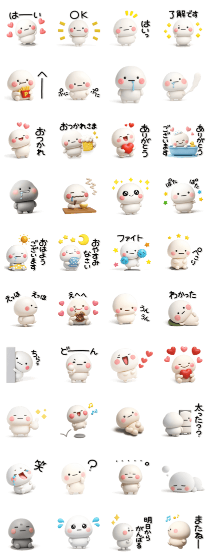 「ず~っと使える♡ぷっくりした子のスタンプ(しろまる)」は、見ているだけで癒されるぷっくり感がとっても可愛いスタンプです。シンプルなのに表情豊かで、送るたびにクスッと笑顔になれるのが魅力。 しろまるの柔らかい雰囲気は、友達や家族との日常会話はもちろん、ちょっとした気づかいやあいさつにもぴったりです。シーンを選ばずずっと使えるので、「可愛いけど実用性も必要!」という方におすすめ。可愛さと便利さを兼ね備えた、長く愛用できるスタンプだと思います。(2025/09/28 11:51)