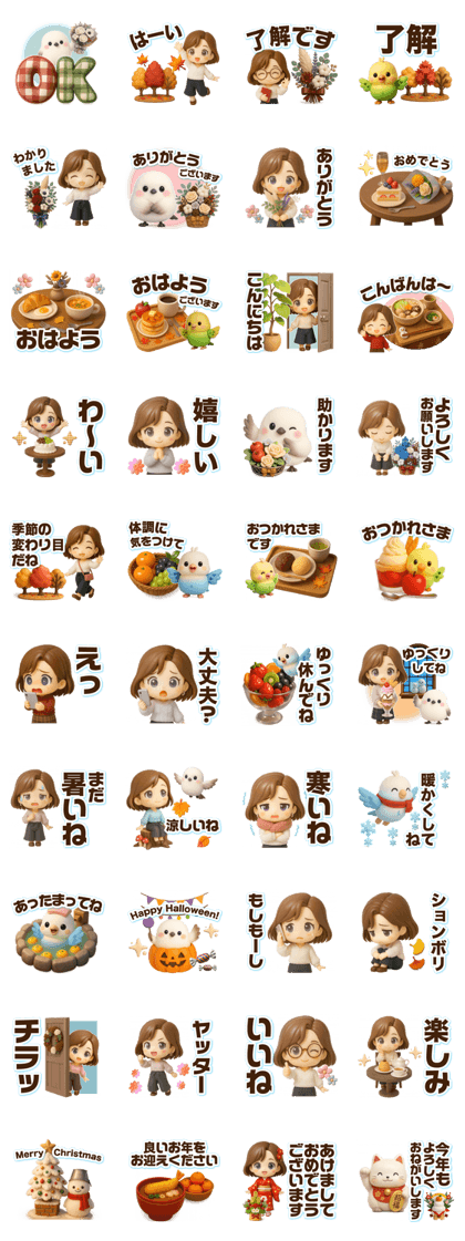 「ふんわり3D女子の華やかな秋冬」は、立体感のあるふんわりとしたタッチが魅力の、とても華やかなLINEスタンプです。 秋冬の落ち着いた色合いや季節感のあるモチーフが取り入れられていて、送るだけでトーク画面が一気におしゃれで大人っぽい雰囲気に変わります。3Dならではの柔らかな立体感が、温かみと上品さを同時に演出してくれるのも素敵なポイントです。 挨拶や日常使いしやすいフレーズが多く揃っているので、友人や仕事関係の方とのやり取りにも安心して使えます。華やかさと落ち着きのバランスが絶妙で、大人女子にぴったりの、長く使えるスタンプだと思います。(2025/09/25 09:09)