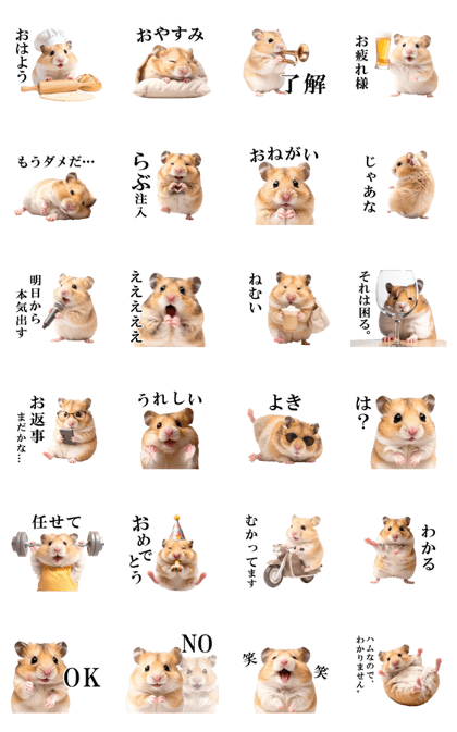 「毎日使える♪リアルなハムちゃん」は、その名の通りリアルでかわいらしいハムスターの魅力を存分に楽しめるスタンプです。細部まで丁寧に描かれた表情や仕草がとても生き生きしていて、まるで本物のハムスターがトーク画面にいるかのような臨場感があります。 日常会話で使いやすいフレーズが揃っており、「おはよう」「ありがとう」「おつかれさま」など、どんなシーンにも自然に取り入れられるのが嬉しいポイントです。小さくて可愛いハムちゃんの姿が、トークに癒しと温かみをプラスしてくれます。(2025/10/30 12:11)