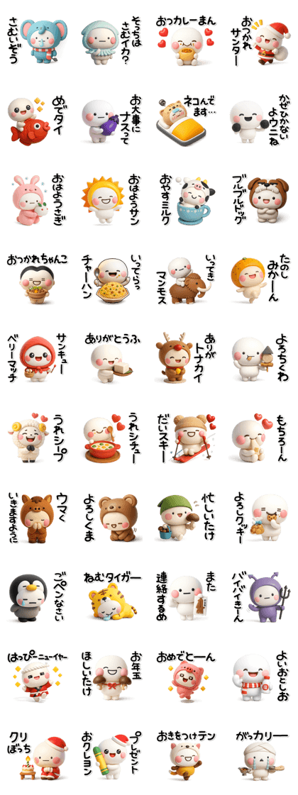 『毎年使える♡冬のダジャレスタンプ【年賀】』は、見るだけで思わずクスッと笑ってしまう、センス抜群のユーモアスタンプです。 まず特筆すべきは、“毎年使える”という便利さ。年賀や冬のあいさつにぴったりな言葉がそろっているのに、干支や年号に左右されないため、毎年ずっと活躍してくれるのが嬉しいポイントです。 そして最大の魅力は、なんといってもダジャレのセンス。思わず「そう来たか!」と笑ってしまうような軽やかな言葉選びで、トーク画面が一気に明るくなります。堅苦しくなりがちな新年のあいさつも、このスタンプひとつでぐっと親しみやすくなるでしょう。 さらにデザインもかわいらしく、冬らしい温もりのある色づかいが魅力。ゆるいイラストと絶妙なダジャレの組み合わせが、送る人も受け取る人もほっこりした気分にしてくれます。(2025/11/06 10:07)