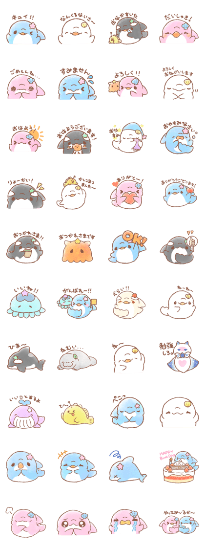 『みいるか ゆるいるかスタンプ』は、見た瞬間に肩の力がふっと抜けるような、やさしい癒し系スタンプです。 まず、この“いるか”の表情がすごく絶妙なんです。 元気に跳ねたり、無理に可愛さをアピールするわけじゃなくて、ちょっと気の抜けたような、いい意味で「ゆる〜い」表情。 そのゆるさが、忙しい日常の中の小さな休憩みたいに感じられます。 言葉も、がっつり主張するタイプじゃなくて、日常のやりとりにすっと溶け込むものが多いのが良いところ。 「ありがとう」「おつかれさま」「またね〜」みたいに、誰にでも、どんな相手にも送れる言葉がそろっています。 それから、丸みのあるシルエットと、淡い色づかいが本当に目に心地よいです。 トーク画面に並んだときに、ごちゃっとせず、優しい空気を作ってくれるのも魅力。 派手に目立つタイプではないけど、長く使えるタイプのスタンプ。 トークに“余白”や“呼吸”を運んでくれる、そんな存在です。 「頑張りすぎてるなぁ」って日にも、「まあいっか」って微笑ませてくれる。 そんな、そばにいてくれる感じのスタンプでした。(2025/11/06 09:52)