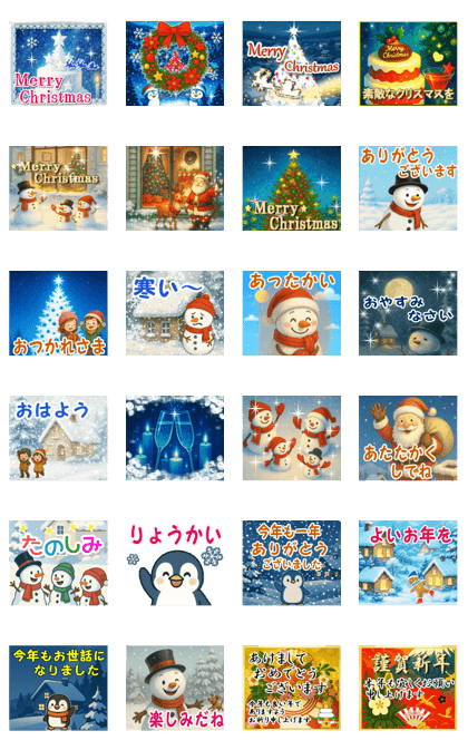 「☆光のクリスマス☆年末年始」 これ、めっちゃキラキラしてて可愛いスタンプしんよ〜!←クロちゃんかっw まずね、光のエフェクトがほんと綺麗で、 クリスマスのワクワク感も、年末年始の特別感も ぜ〜んぶまとめて楽しめる感じなの。 見た瞬間テンション上がるやつ! しかも “メリークリスマス” も “あけおめ” も ちょうどいい表情と字体で入ってるから、 どんな相手にも送りやすいのが助かる〜。 冬のキラキラ感がグッと出てて、 押すだけでトークが一気に華やかになるよ。 イルミネーション感すごいし、気分も上がりっぱなし! 最後にアドリブいきましょ、 光!ひかり!まぶしすぎて僕見えな〜いしんよ〜!! (クロちゃんテンションでどうぞw)(2025/12/03 09:40)