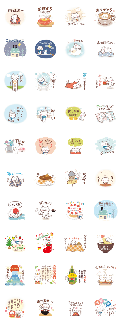 可愛いスタンプばかりに、心が思わず奪われた!!『「冬」猫と空と味覚♪毎年ずっと使える♡』は、冬の空気の澄んだやさしさと、猫のあたたかい存在感がそのまま形になったような、ほっこり系のスタンプです。 まず、猫の表情がとても魅力的なんですよね。 気ままだけど、どこか寄り添ってくれるような、あの絶妙な距離感。 無理にかわいさを押しつけないのに、見れば見るほど「かわいい…」って思ってしまう、そんな自然体の魅力があります。 それに、冬の食べ物や、季節の空気を感じさせる小物たちがやわらかいタッチで描かれているのもかわいらしいポイント。 こたつ、マフラー、ほかほかメニュー… 「この季節って、こういう小さな幸せあるよね」と思い出させてくれる感じです。 言葉も、普段の会話でサッと使いやすいものがそろっています。 「おつかれさま」「あったかくしてね」「ありがとう」 やさしいけれど重くない、“ちょうどいい距離感”の言葉たち。 色づかいも落ち着いていて、トーク画面にすっと馴染むのも嬉しいところです。 毎日使えるのに、見飽きない。 まさにタイトル通り、「毎年ずっと使える」タイプのスタンプです。 冬の時間を、少しだけあたたかくしてくれる。 そんなやさしいスタンプだと思います。(2025/11/06 09:58)