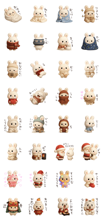 「本能のまま甘えるうさぎ冬」は、うさぎの素直でちょっとわがままな可愛さがそのまま伝わる、見ていて癒されるスタンプです。甘え方が押しつけがましくなく、やわらかい雰囲気なのが使いやすいポイント。冬らしいぬくもりがあって、トークがふっと優しくなります。(2025/11/07 11:06)