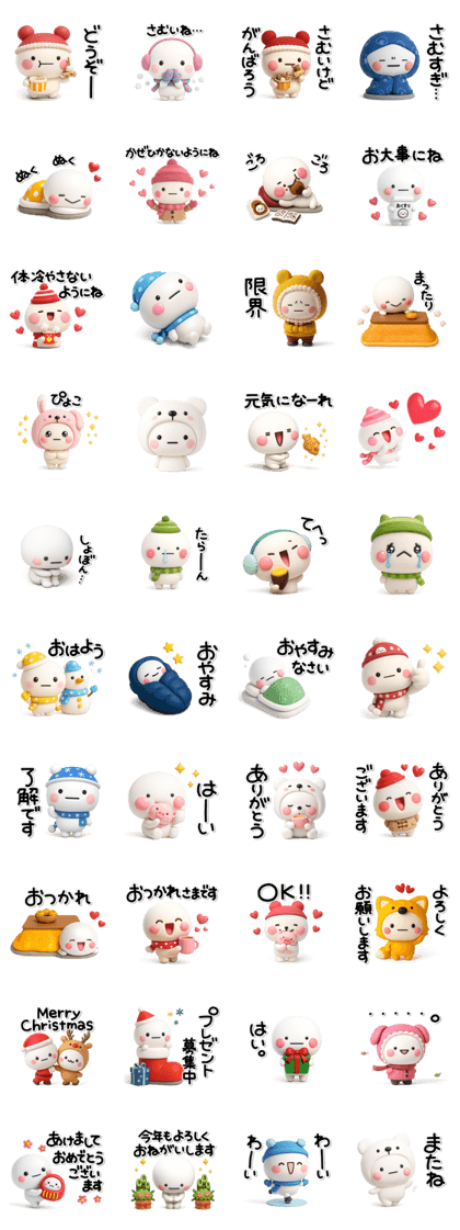 大好きなしろまるのスタンプ!!その名も「毎年使える♡素敵な大人のための冬スタンプ」!!!上品で温かみのあるデザインが魅力的な冬スタンプです。落ち着いた色合いと丁寧な言葉づかいで、大人の気遣いや優しさがふんわり伝わります。挨拶や感謝など、季節の場面で使いやすい言葉が揃っているので、毎日のトークにも自然に馴染みます。派手すぎない可愛さが心地よく、相手にも好印象を与えてくれるはず。冬だけでなく、長く愛用したくなる、品のある仕上がり。大人のLINEにぴったりなスタンプですよ!!(2025/11/13 10:45)