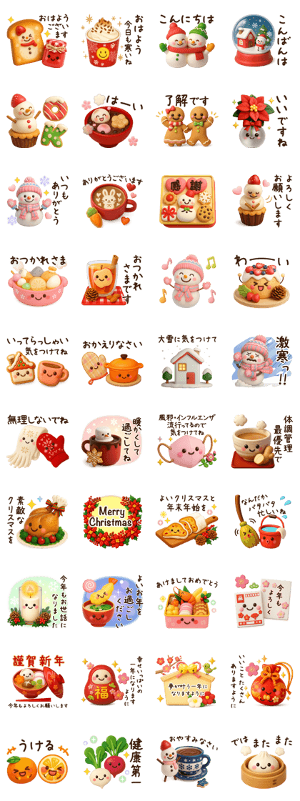 もうクリスマスの足跡が・・『ずっと使える♡冬にやさしい日常言葉』は、ふわっと気持ちに寄り添ってくれる、優しい空気のスタンプです。 まず、全体の色味がやわらかくて、トーク画面にぽっと灯りがともる感じがします。冬って、どうしても気持ちがカサつきやすい季節だけど、このスタンプは、見てるだけで「まあ、ゆっくりいこうか」って言われてる気がするんですよね。 言葉も、押しつけがましくないところがいいです。 「ありがとう」「おつかれさま」「無理しないでね」 …こういう、日常ですっと出したい言葉が、ほどよい距離感で並んでる。 あと、キャラクターの表情が絶妙。大騒ぎもしないし、冷たくもない。 “ちょっと微笑む”くらいのあたたかさで、相手に送ると嫌みなく伝わるのが本当に使いやすい。 仕事の合間でも、家族とでも、友だちとでも、誰にでも気持ちよく使える安心感があるスタンプです。 派手ではないけれど、じんわり心に優しい。 まさに“冬にちょうどいい”って感じのスタンプですねカワ(・∀・)イイ!!(2025/11/06 09:49)