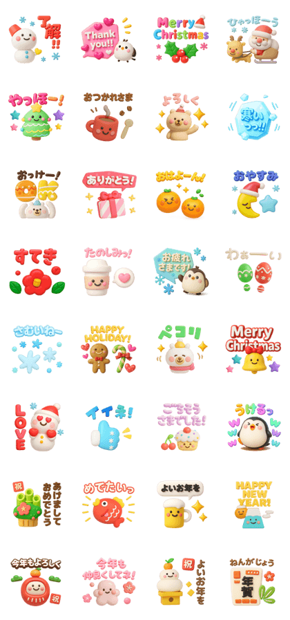 冬★ぷっくり立体2025は、ぷっくり質感のくまさんや雪だるまなどかわいい小物たちがとにかく可愛すぎる冬スタンプです☆ 立体的な丸みが温かみを感じさせ、見るだけでほっこり癒されます。 冬らしい淡い色づかいが上品で、大人でも使いやすいデザイン。 表情も仕草も丁寧に描かれていて、季節のあいさつから日常会話まで幅広く活躍します。 「ありがとう」や「おつかれさま」など使い勝手の良い言葉が揃っていて、送る相手への気づかいも伝わる一冊。 やさしい雰囲気のスタンプを探している人にぴったりです。 冬のトークを可愛く彩ってくれる、毎日使いたくなるシリーズですね(⋈◍>◡<◍)。✧♡(2025/11/18 08:56)