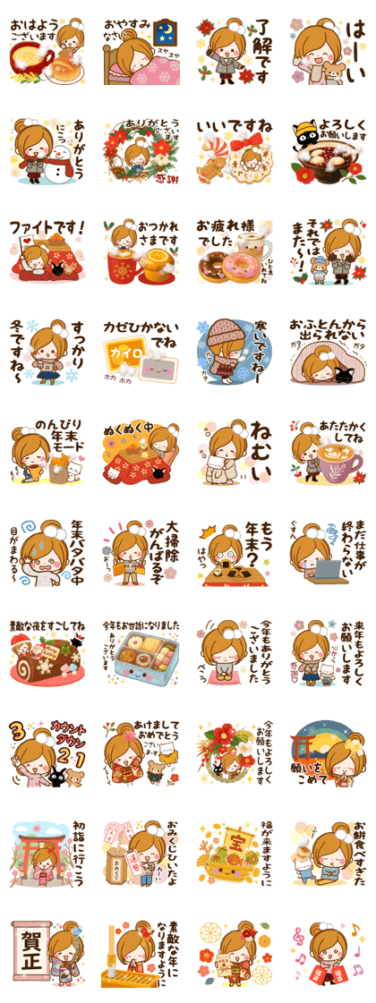 「ずっと使える冬とお正月スタンプ」は、可愛い女の子とクロネコの組み合わせがとても愛らしく、見るだけで心が温まる魅力的なセットです。冬からお正月まで長く使える内容が揃っており、季節の挨拶もしっかりカバーしてくれる実用性の高さも嬉しいポイント。女の子のやさしい表情と、クロネコのちょっぴりいたずらっぽい雰囲気が絶妙にマッチしていて、送るだけでトークがほっこりします。落ち着いた色合いで大人にも使いやすく、誰に送っても喜ばれるデザイン。冬の会話を可愛く彩ってくれる、万能で心温まるスタンプですね(⋈◍>◡<◍)。✧♡(2025/11/14 10:15)