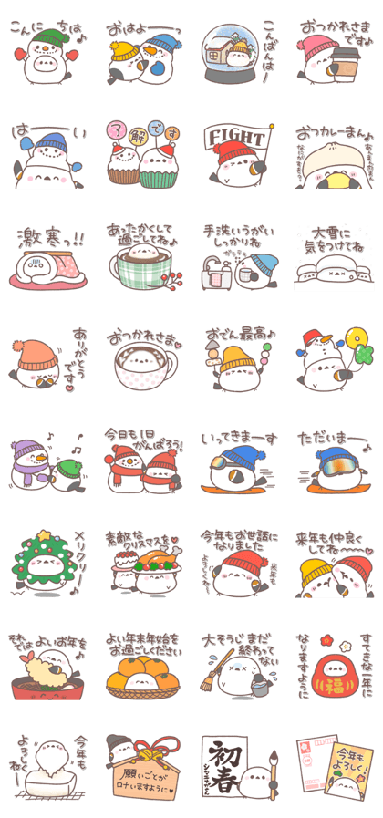 「♥️シマエナガさんの年末年始♥️」は、ふわふわの可愛さがぎゅっと詰まった癒し度満点のスタンプです。 冬らしい優しい色合いとシマエナガさんの愛らしい表情が、年末年始の挨拶にぴったり。 お正月モチーフも上品で、どのシーンにも使いやすいのが嬉しいポイントです。 「ありがとう」「ことよろ」など定番フレーズが揃っていて、毎日のやり取りで大活躍。 柔らかな雰囲気が相手にも伝わり、送るたびにほっこり温かい気持ちに。 可愛いだけでなく実用性も高い、冬の必携スタンプです。 新しい一年の始まりを優しく彩ってくれる、とても魅力的なシリーズですね♡(2025/11/15 16:44)