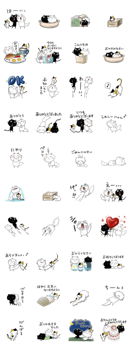 まず猫の名前に魅かれました!こんなに可愛い名前を考えつく人、すごい!三毛っぽいのが煮豆ちゃんでしょうか。猫の習性を生かした、いかにも猫な描写(袋、箱、鍋などに入るのが好き)、そうかと思えば擬人化した絵もあり一つで二度美味しいスタンプになってるのが嬉しい〜。煮豆ちゃんは豆乳ちゃんが大好きみたいですね。遊んでもらおうとちょっかいをだしたり、看病したり。3匹仲良く同じ動作をしているのも、猫好きなもんでそれだけでニヤニヤしてしまう、公共の場でラインを開いたら怪しい人になりかねない危険な猫ちゃんたちです。(2026/01/21 01:12)