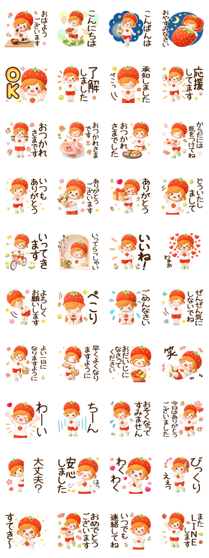三寒四温でも着実に春になってきている!!!苺帽子の女の子、見た瞬間に“やさしさ100%”が伝わる癒し系デザイン。 ふんわりした色合いと柔らかい表情が、日常のやりとりにすっと馴染む。 セリフも丁寧すぎず砕けすぎず、誰にでも送りやすい絶妙なバランス。 季節を選ばない雰囲気だから、タイトル通りほんとに“ずっと使える”のが嬉しい。 ちょっと疲れた日でも、この子がいるだけでトーク画面が優しくなる。 返信に困ったときの“とりあえずこれ送っとこ”枠としても優秀。 苺帽子のワンポイントが可愛さを底上げしてて、毎日使いたくなるスタンプ(⋈◍>◡<◍)。✧♡(2026/03/10 09:43)