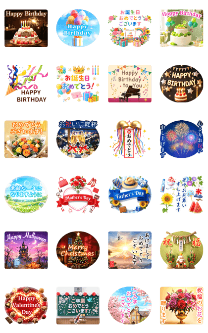 飛び出す演出がまず楽しくて、送った瞬間にお祝いムードが一気に上がる。 明るい色づかいがハッピー感を引き出して、相手の表情まで想像できる仕上がり。 誕生日でも合格でも記念日でも、とにかく万能に使える安心のラインナップ。 メッセージがしっかり読めるから、気持ちがちゃんと伝わるのも嬉しいポイント。 派手すぎず可愛さもあって、誰に送っても“ちょうどいい”好印象を残せますね(^。^)y-.。o○(2026/04/04 11:45)