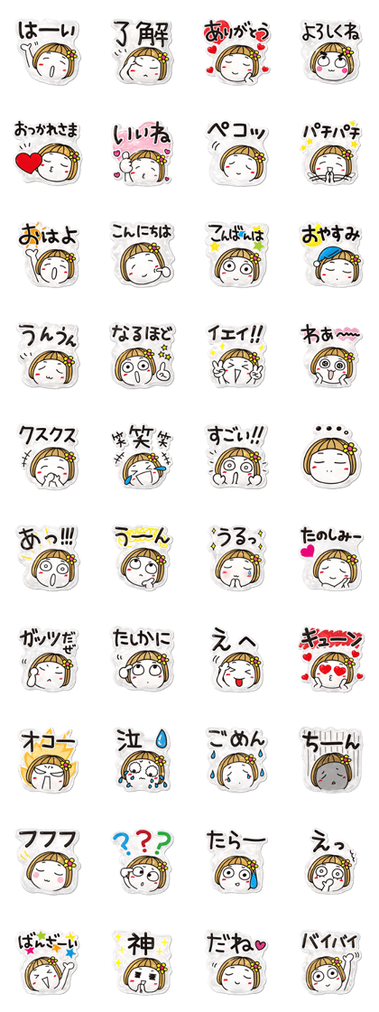 ぷるんっとしたジェルシール感がめちゃ可愛くてまず目がいくし、 色味もやわらかくてトーク画面が一気に華やぐのが最高。 あいさつ系がしっかり揃ってて、どの時間帯でもサッと使える安心感がある。 はな子の表情がどれも絶妙で、送るだけで優しい雰囲気になるのがありがたい。 気軽に送れるのにちゃんと気遣いが伝わるのがポイント高い。 季節問わずずっと使えるデザインだから、常備スタンプとしても優秀。「かわいい+実用性」のバランスが完璧で、毎日使いたくなるやつだよね~~( ´艸`)(2026/04/23 12:15)