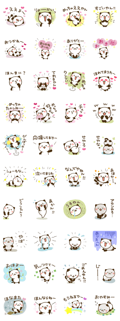 パンダなのかねこなのか…とにかくとってもかわいい動物が、関西弁を喋るなんて…ギャップがすごい!でもこれがまた相手を迷わずに送れる!とっても便利でかわいい(2018/07/09 23:39)