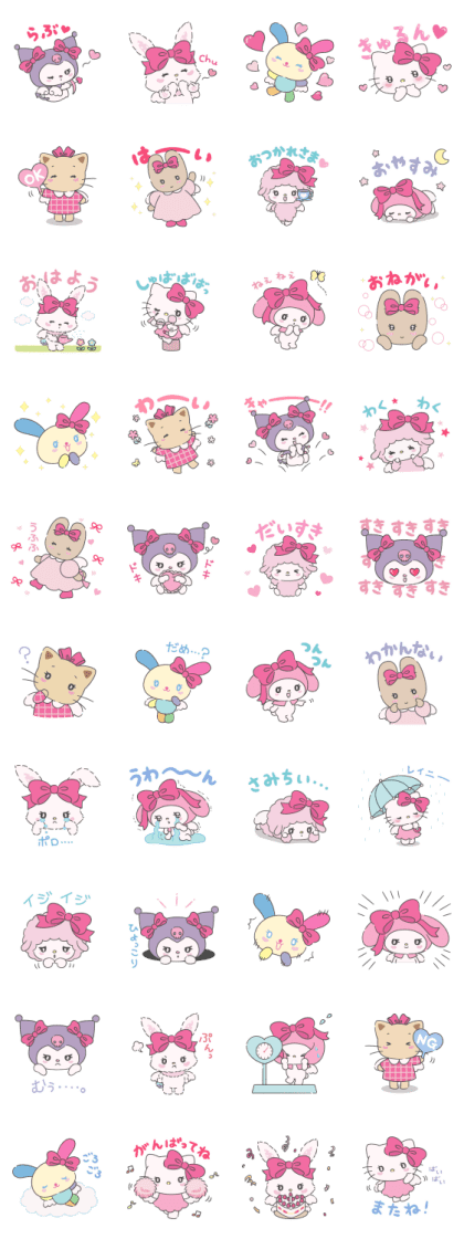 見た瞬間に心がときめく、とっても可愛いスタンプです! サンリオの人気キャラクターたちが、ふんわり天使の羽とリボンをまとって登場するデザインは、まるで夢の中の世界みたい。 ピンクやパステルカラーが多く使われていて、トーク画面が一気に華やぎます。 どのスタンプも優しく、癒しとキュートさのバランスが絶妙。 「ありがとう」「おつかれさま」など日常で使いやすい言葉も揃っていて、毎日使える万能タイプです。 サンリオ好きにはたまらない、見ているだけで笑顔になれるスタンプ。 天使モチーフとリボンの組み合わせが最高に可愛く、ギフトにもぴったりです!!(2025/10/26 10:37)