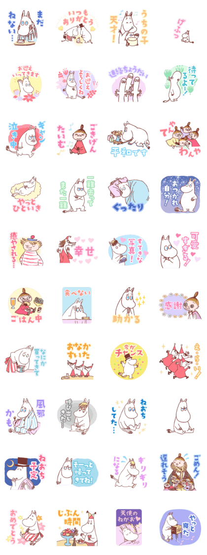 「子育て奮闘!ムーミン 応援スタンプ」は、忙しいママやパパの気持ちに寄り添ってくれる、心強いスタンプです!! ムーミンたちのやさしく温かい表情が、子育ての大変な日常をそっと応援してくれるようで、トーク画面を見るたびに癒されます。かわいさと優しさにあふれたイラストが、疲れた心をふっと和ませてくれるのが魅力的です。 「がんばって!」「おつかれさま!」など、育児中によく使う言葉が揃っているので、友達同士で励まし合うときにもぴったり。送る側も受け取る側も元気をもらえる、まさに子育て世代の味方になるスタンプです。 かわいらしいムーミンの世界観と、実用的で気持ちに寄り添うフレーズが一緒になった「子育て奮闘!ムーミン 応援スタンプ」。毎日のやり取りに温かさをプラスしてくれる、おすすめのスタンプです(⋈◍>◡<◍)。✧♡(2025/10/14 07:56)