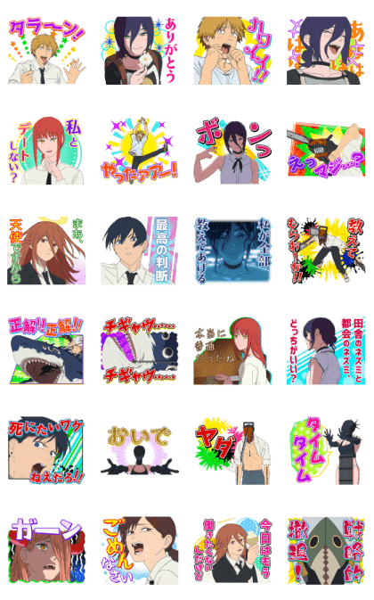 原作のストーリーを知るほど深く刺さる表情の選び方で、何気ないセリフにも背景が見えてくる。マキマの微笑み、デンジの戸惑い、パワーの爆発力、それぞれがキャラの個性を忠実に再現しており、愛着を持って使える。ファン同士のやり取りに使うと、共感で会話が弾むこと間違いなし!(2025/10/27 02:06)