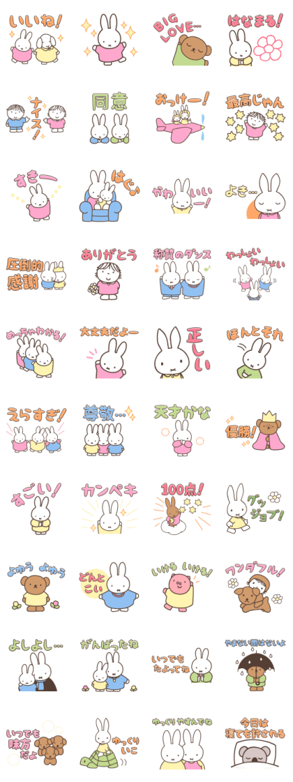 かわいすぎてニヤけ stopping できない…(*´Д`)♡ みんな はなまる!ミッフィー やさしいタッチのミッフィーが、とにかく心をほぐしてくれる癒し系スタンプです。 シンプルなのに表情豊かで、どんなメッセージにもそっと寄り添ってくれます。 はなまるをくれるミッフィーが可愛すぎて、送る側も受け取る側もほっこり確定。 仕事でも日常でも、気軽に使えるやわらかな言葉が揃っていて超万能。 落ち着いた色合いがトーク画面に馴染んで、使い勝手も抜群です。 ミッフィー好きはもちろん、癒しを求める人にもぜひおすすめしたい一品!ヤバ過ぎるスタンプ注意wwwwww(2025/11/28 08:58)