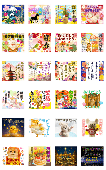 うほほ~~いヾ(o´∀`o)ノワァーィ♪「飛び出す 大人の華やか年賀状’26」 これ、めっちゃキレイで豪華なのに、 気取らずサッと送りやすい神スタンプやん…!( ´艸`) 飛び出し演出がほんと華やかで、 「あ、新年きたわ…!」って一瞬で気分上がるやつ! しかも大人っぽい色味だから、 目上の人にも友達にも送りやすいのが優秀すぎる~! 文字も見やすいから、 「あけおめ」「今年もよろしく」って 使う場面に迷わないのもありがたいしんよ←クロちゃんかっ そしてここで突然のエンターテイナー発動── ラーメン!つけ麺!年賀状キレイすぎて僕感動イケメン!! ↑完全に狩野英孝さん降臨したしんよ(勝手にw) とにかく派手すぎず上品に盛れて、 新年のスタートを華やかにしてくれる最高のスタンプでした〜!wwwww(2025/12/03 08:58)
