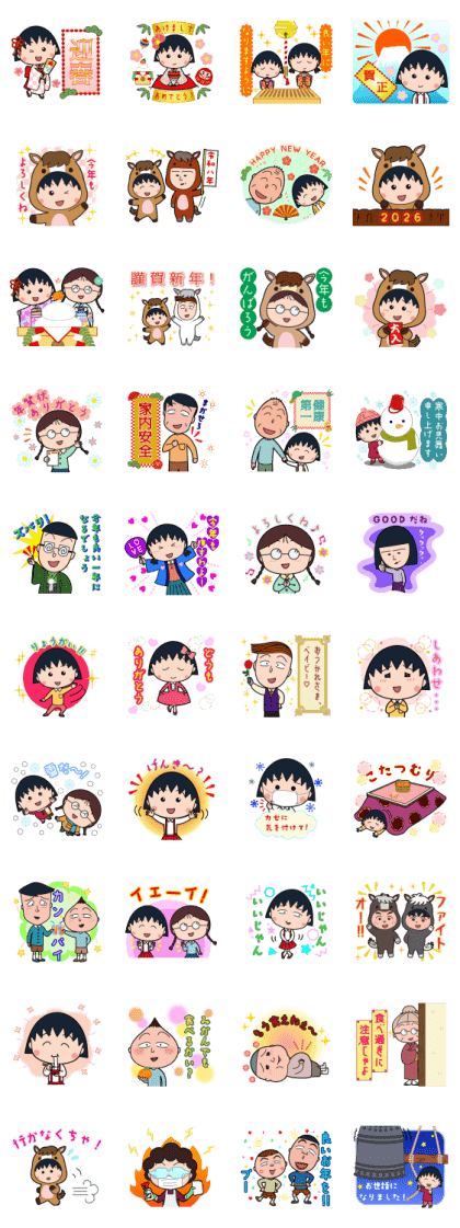 きたしんよ〜!!(→またまた ウザwwwww) ちびまる子ちゃん お正月&冬のスタンプ’26、 もう安定のかわいさでホッコリ度MAXしんよ〜!! まるちゃんのあの「だら〜ん」とした感じと、 冬のお正月ムードが合いすぎてて最高しん! こたつ・みかん・ごあいさつ・あけおめまで、 全部まるちゃんに任せられる安心感しんよ〜! 友だちに送っても、家族に送っても、 「あ、まるちゃんだ〜」って 一瞬で場がなごむ魔法のスタンプしん!! 派手じゃないのに、ちゃんと季節感あって、 ず〜っと使えるのがまたズルいしんよ〜! しかも’26版ってだけで、 なんか新年から運気上がりそうだしん!! 送るだけで正月気分になれるって、 まるちゃんどんだけ〜!!しんよ〜!! 冬もお正月も、 結局いちばん安心して使えるのは ちびまる子ちゃんだったしん!! これはもう、毎年の定番入り確定しんよ〜!!(2025/12/05 08:06)