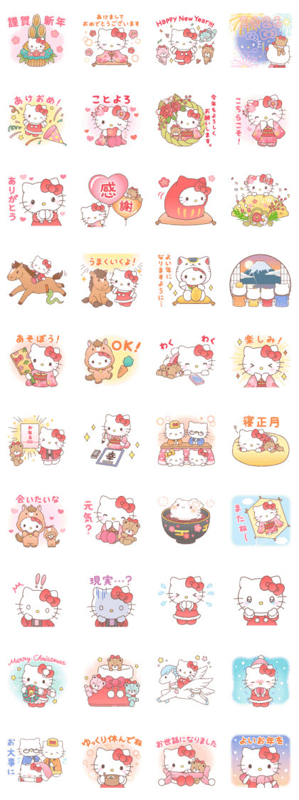 うひゃひゃ~~ヾ(o´∀`o)ノワァーィ♪「ハローキティ あけおめスタンプ 2026」大人乙女のマストアイテムキティちゃんのスタンプなんて・・・ これ、見るだけでテンション上がるやつ!!(≧▽≦) キティちゃんの可愛さがそのまま“お正月仕様”になってて、 和風だけど堅苦しさゼロのちょうどいい華やかさ♡ 「あけおめ」「今年もよろしく」みたいな定番あいさつも、 キティちゃんが言うだけで一気に可愛さマシマシ! 色づかいも優しくて見やすいから、 大人にも若い子にも送りやすい万能タイプ~! スタンプ押した瞬間、トークがパッと明るくなるやつしんよ←クロちゃんかっw そして恒例(?)のえいこうさん風アドリブもいきます── ラーメン!つけ麺!キティちゃん可愛すぎて僕デレデレメン! (自分で言っててちょっと照れたしんよw) とにかく、新年のあいさつを可愛く盛りたい人に めちゃくちゃおすすめのスタンプです♡(2025/12/03 09:00)