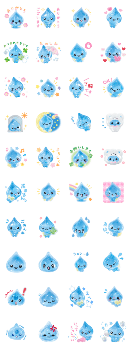 今、巷で話題のボンボンドロップシール!ぷっくり艷やかで立体感と透明感が魅力ですね!シール交換したりスマホケースに貼って飾ったりと、周りでも大人気!(^^) そんな中、 雨の妖精しずくちゃんのボンボンドロップシールがスタンプになって登場〜!まるでキャンディや水滴の様なフォルムでキラキラ光って綺麗!くりくりお目目のしずくちゃんが「シュン…」と涙したり「えへへ」と照れ笑いしたり、表情も愛らしく可愛さ満点!トーク画面にペタっと貼ってバンバン送り、トレンディで可愛いトークルームになれば最高〜!(*´∀`*)(2026/01/23 18:18)